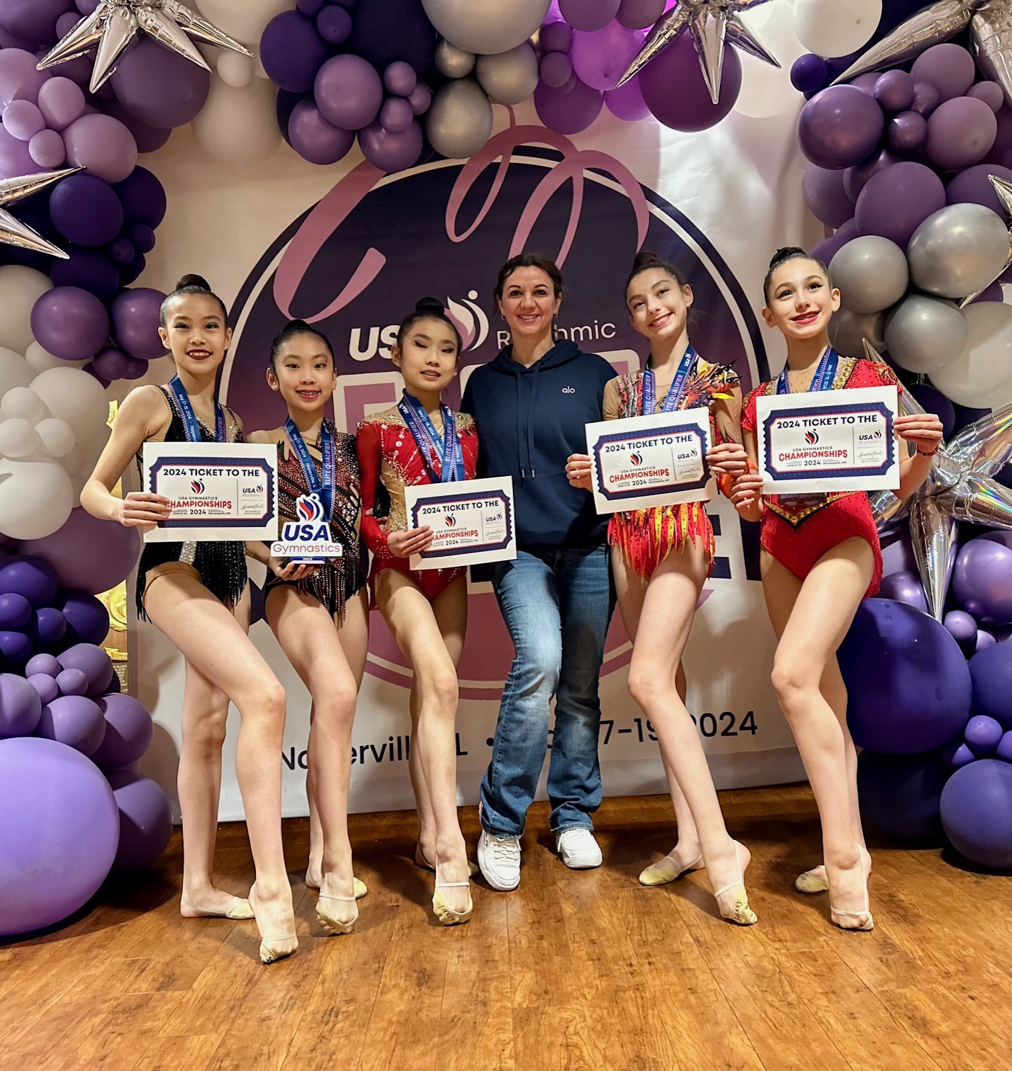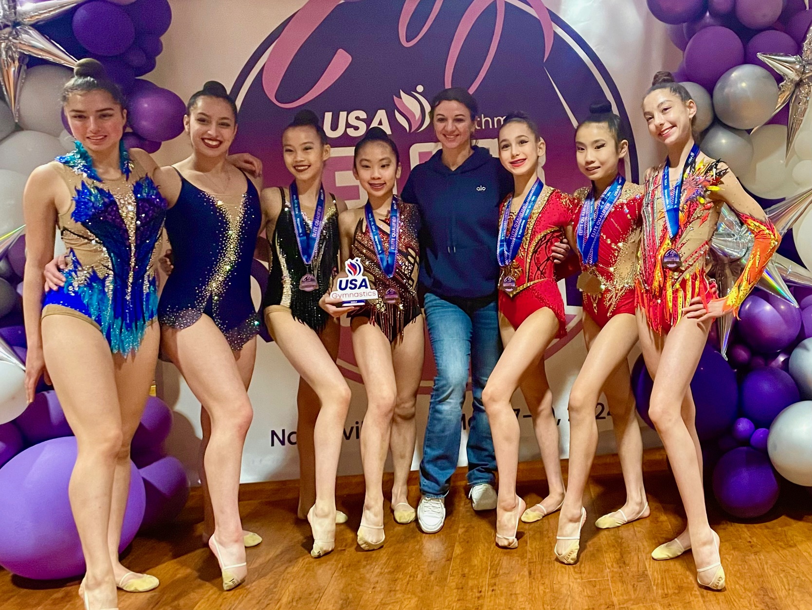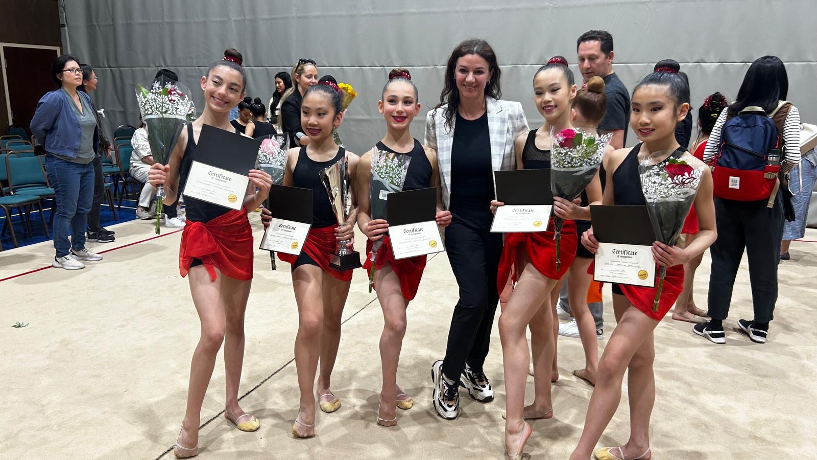Congratulations to Amberly Liu, Sima Gilbert, Linda Petersen, Mia Pu, and Rachel Liang for their remarkable performances. Your dedication and passion for rhythmic gymnastics continue to inspire us all.