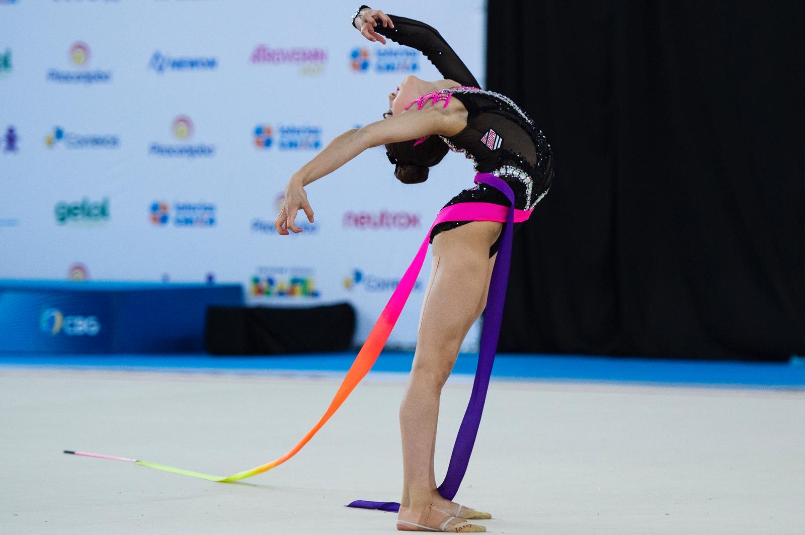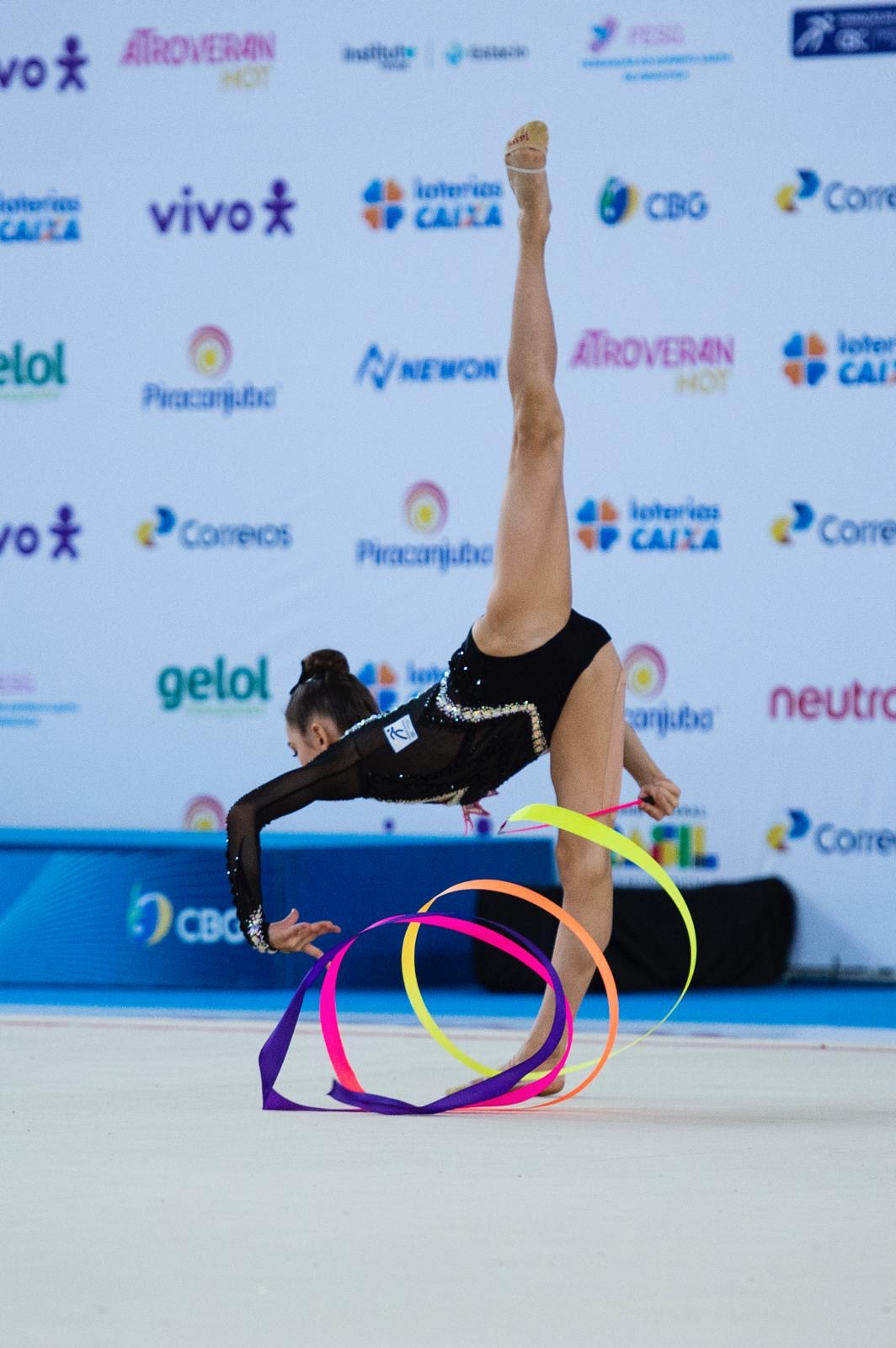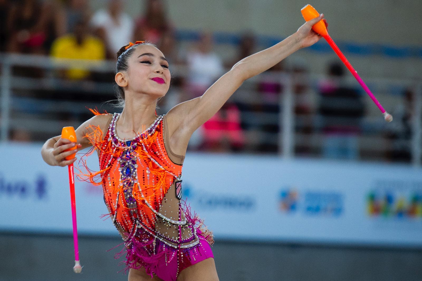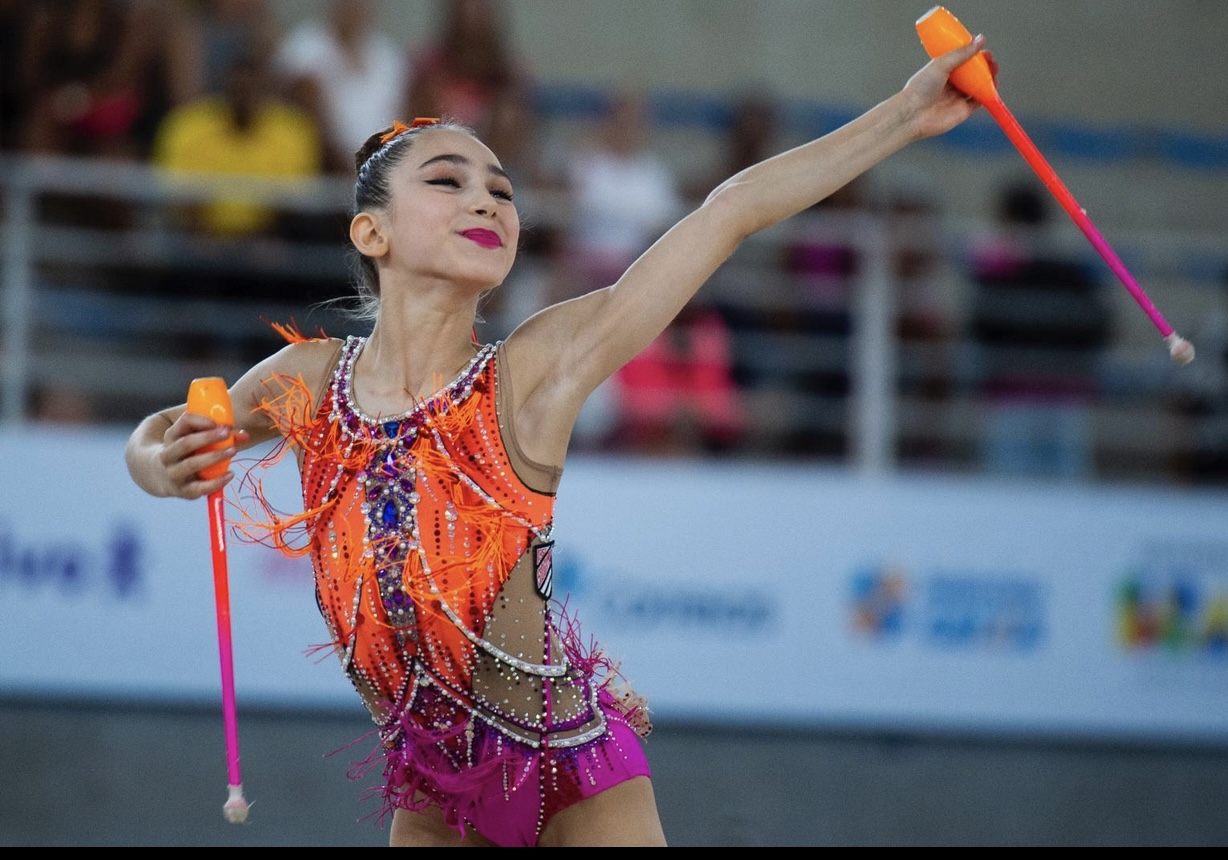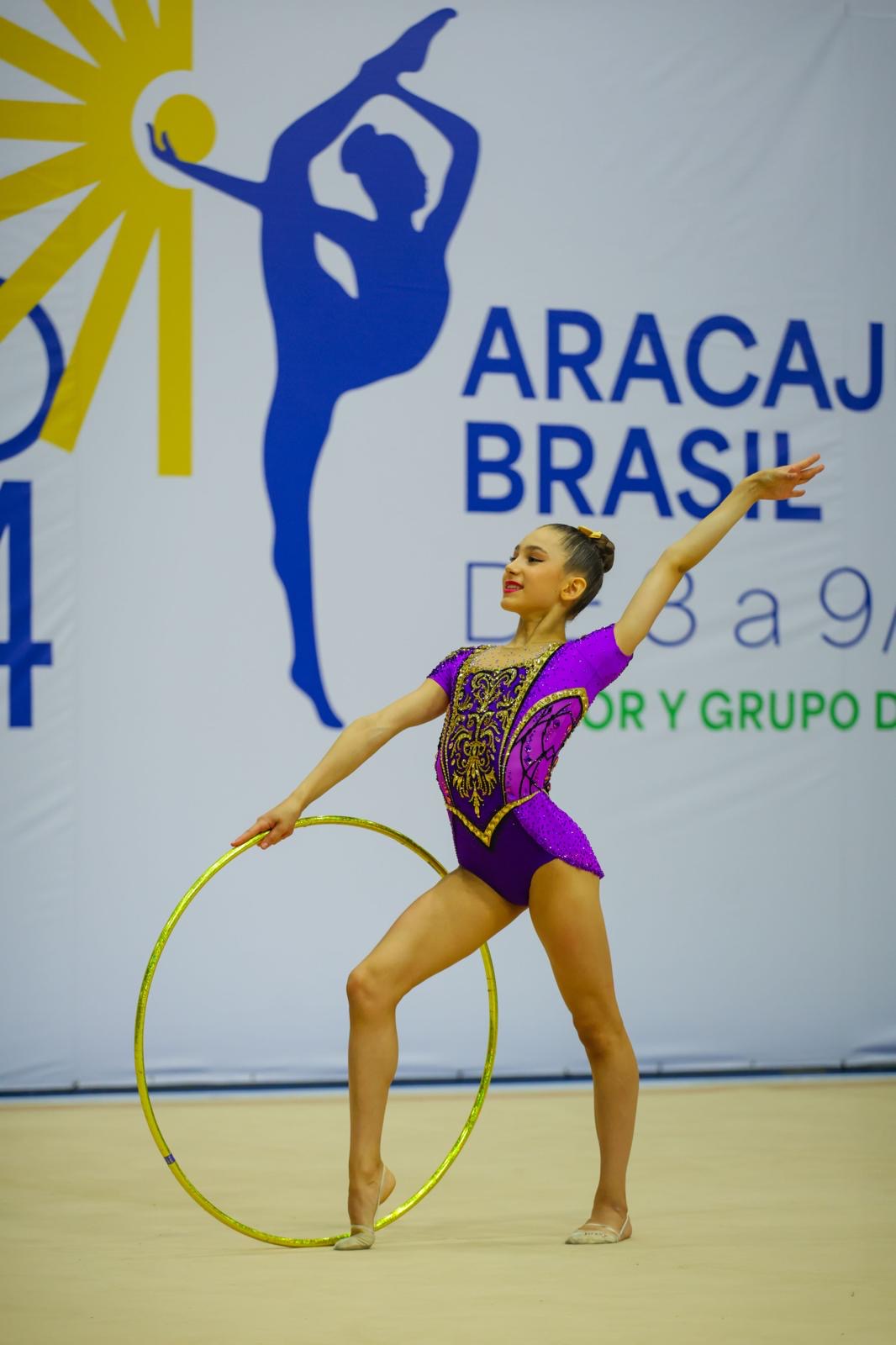 Linda Petersen of Nely’s School dazzled at the Pre Junior-Brazilian Championship, held from August 21-25 in Vitoria, Espirito Santo, Brazil. Her exceptional talent and artistry earned her a gold medal and the National Title with clubs and a silver medal with the hoop.