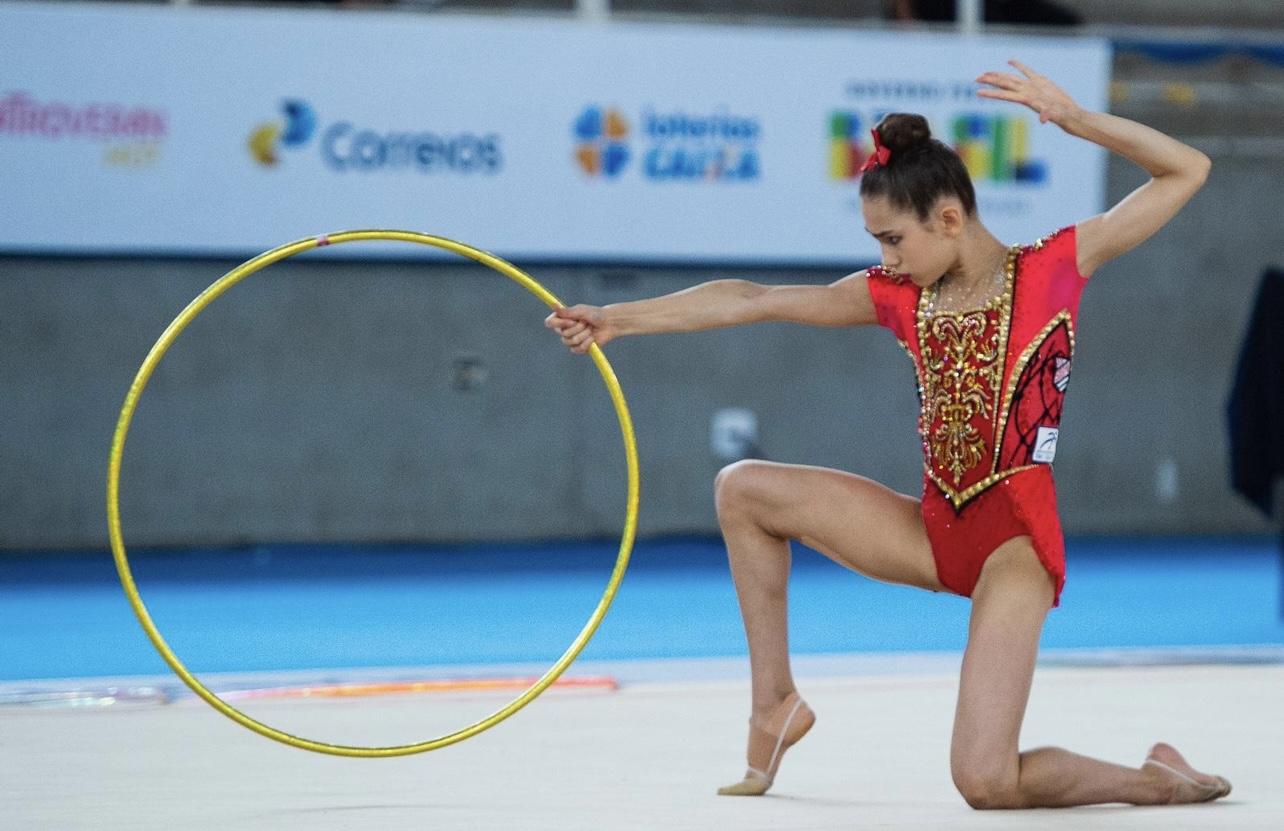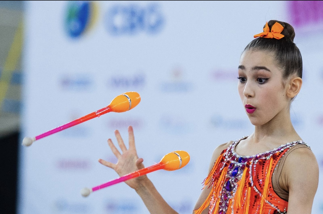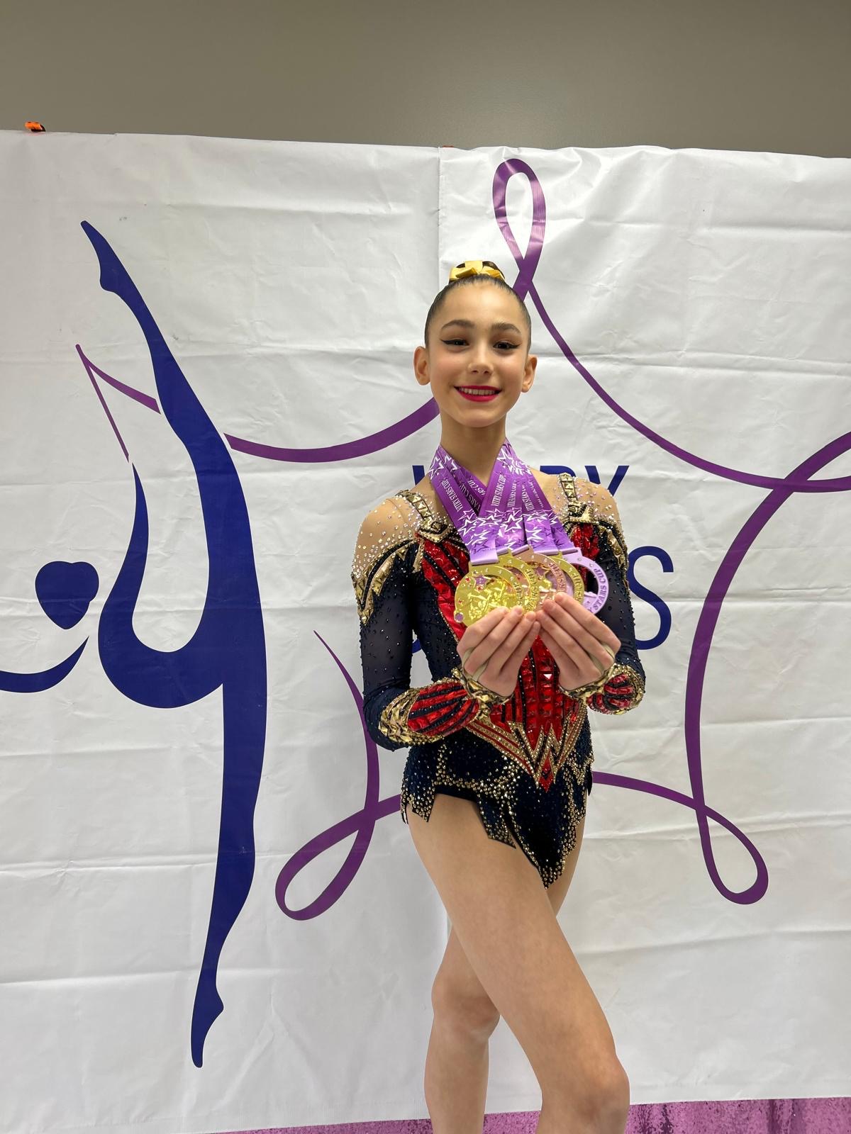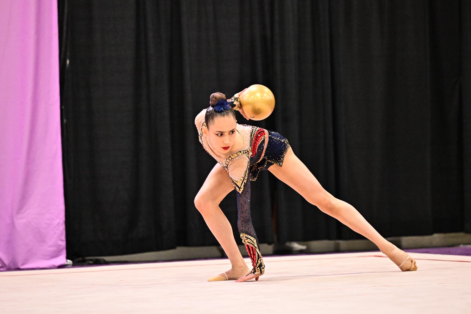 At her first competition of the season, Anna became the Senior All-Around Champion, winning gold in Hoop and Ribbon, earning silver in Ball, and taking bronze in Clubs, securing the Senior event title overall.
