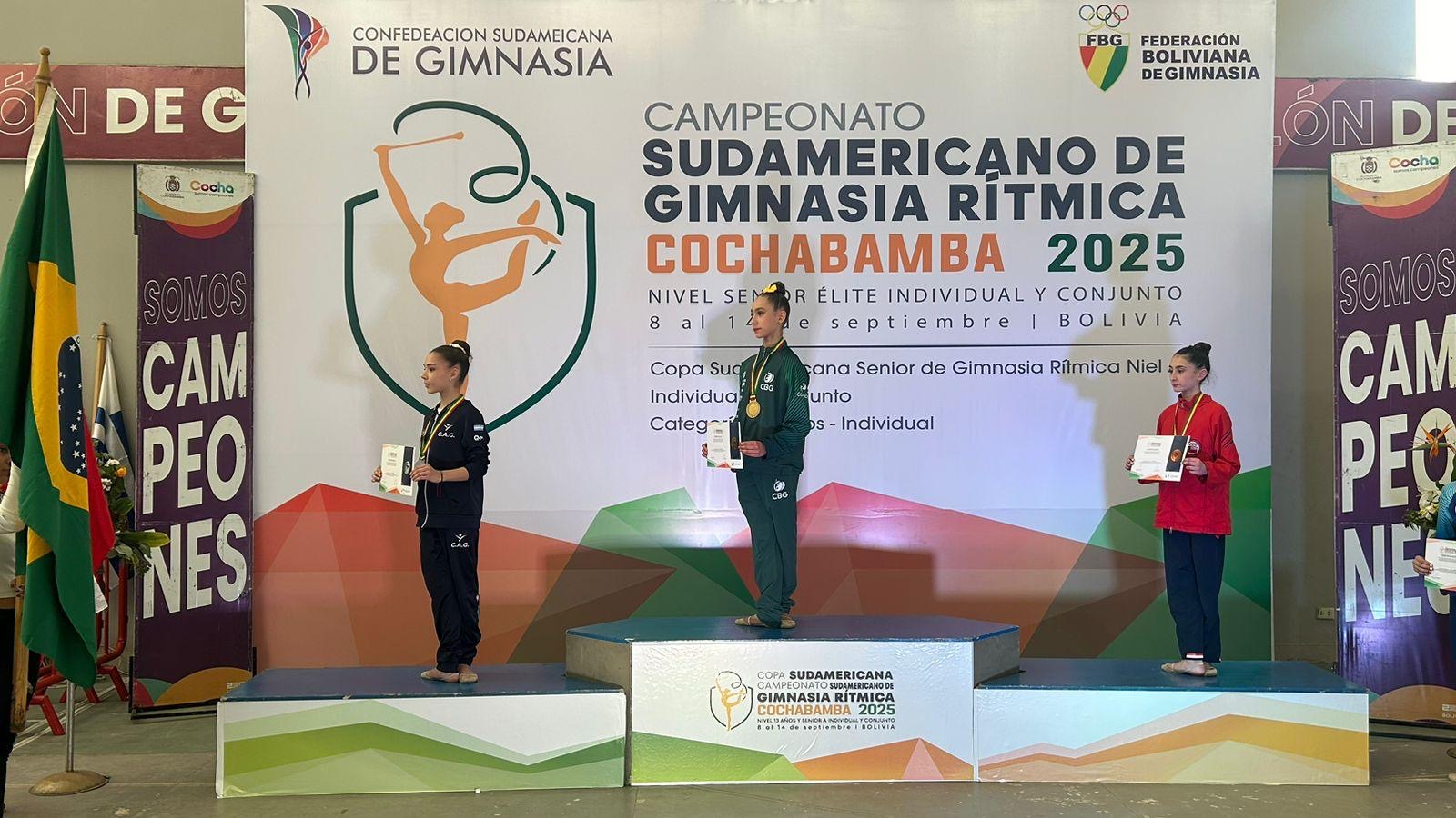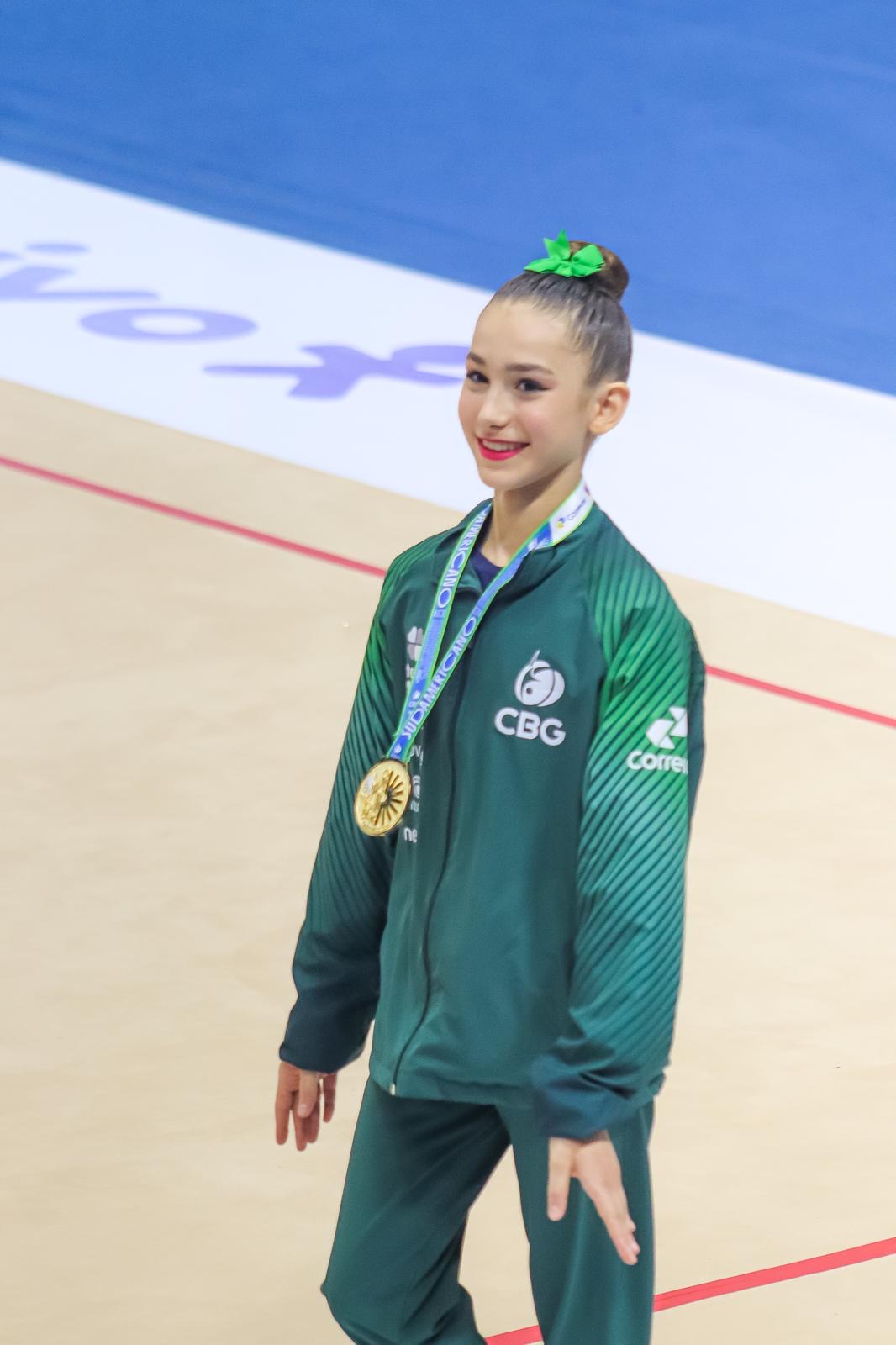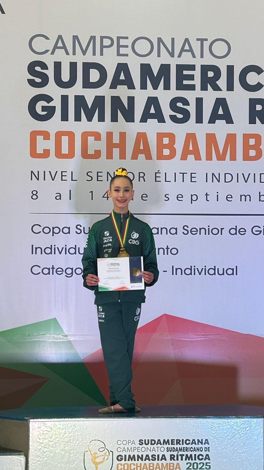 Linda delivered an exceptional performance across all events, earning multiple gold medals and securing the title of South American All-Around Champion. Her results include: