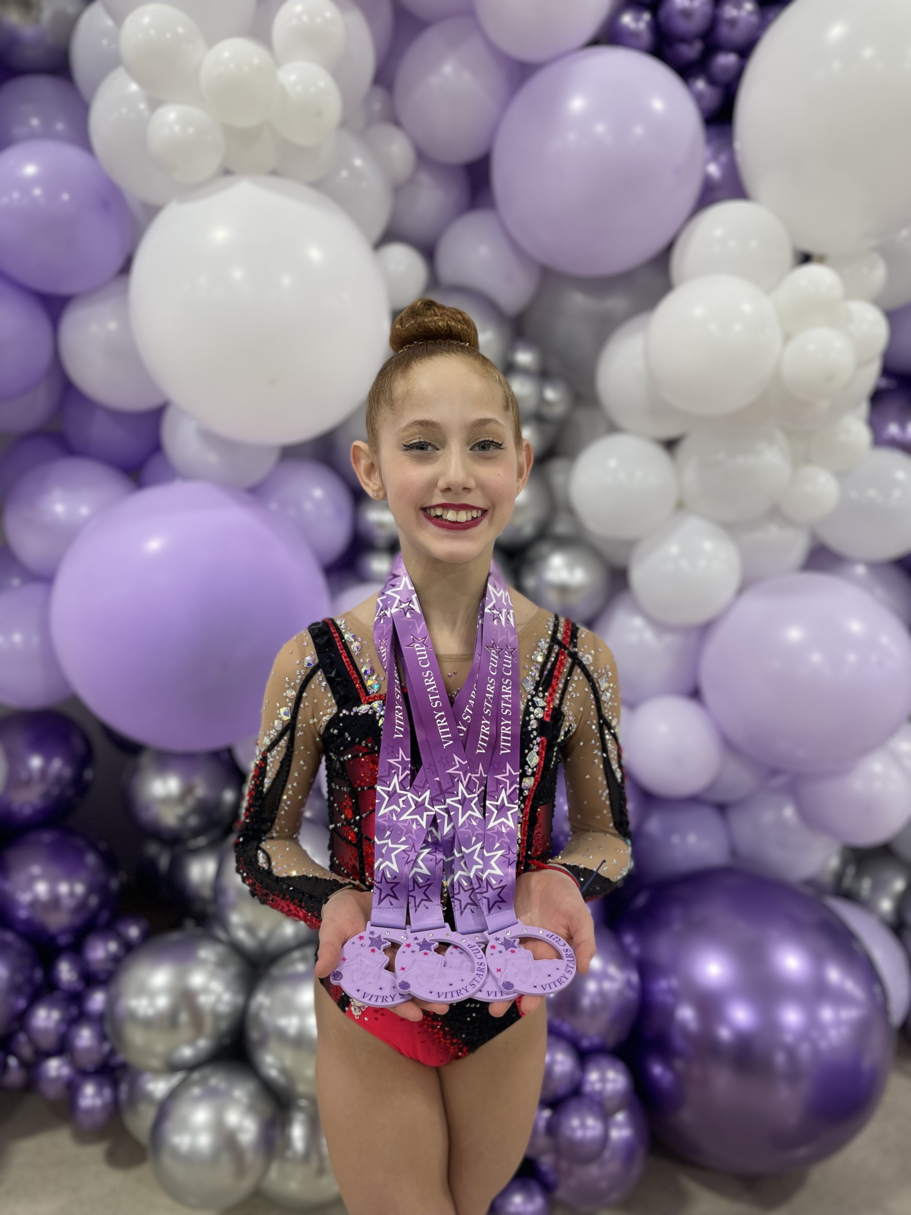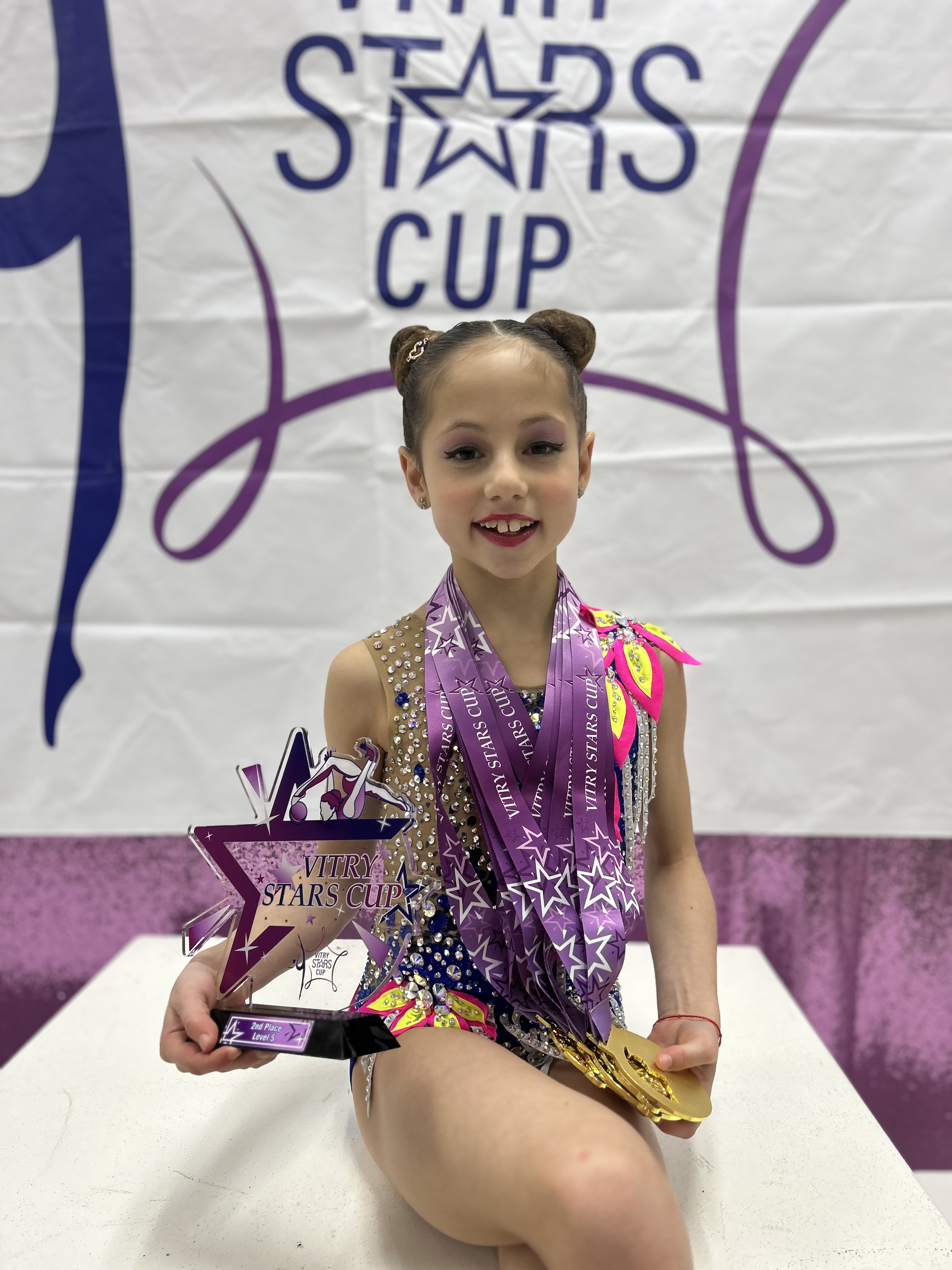 Our team had an outstanding performance at the Vitry Stars Cup in Chicago from March 1-3, 2025, with 11 gymnasts competing from Level 3 to Senior FIG. In Level 3, Anna Xue won the All-Around title in her age group and placed an impressive 4th overall out of 48 gymnasts. Virginia Borriello secured 3rd All-Around in her age group and was honored with the Miss Smile award. In Level 4, Callie Jin delivered a strong performance, finishing 2nd All-Around and earning gold in both rope and hoop. In Level 5, Mila Batsevitsky dominated the competition, winning gold in every apparatus and the All-Around in her age group while also placing 2nd overall among 67 athletes. The most successful in the FIG category was Linda Petersen, who was crowned Champion in her age group and received the prestigious Miss Vitry Stars Cup honors. The girls also had the opportunity to have a Master Class with Silver medalist from Paris Olympics, Boryana Kaleyn from Bulgaria. She provided inspiration for our girls and share a bit of her incredible apparatus work.