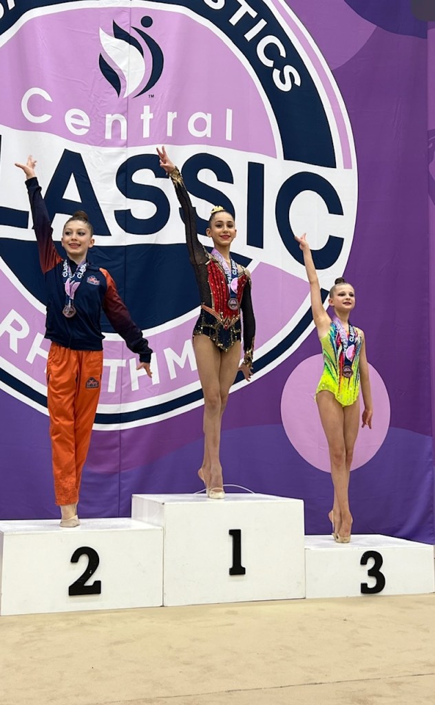 Sima Gilbert’s performance was another highlight of the competition. She earned a bronze medal on the ball, capturing the judges’ attention with her dynamic routine and expressive execution. Sima also demonstrated her versatility and skill across multiple apparatuses, finishing sixth in both clubs and the all-around category. Her achievements reflect her tremendous growth and promise as an athlete.